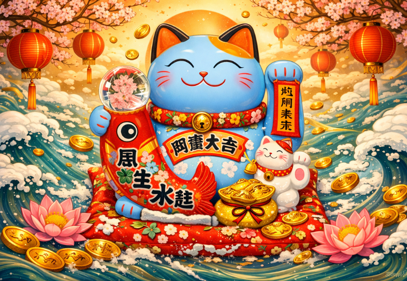 Mèo may mắn (Maneki-neko) là tượng mèo vẫy chân trong văn hóa Nhật Bản, được coi là biểu tượng phong thủy mang lại tài lộc, may mắn và bình an cho gia chủ.